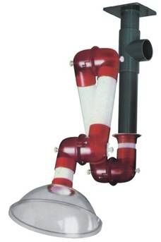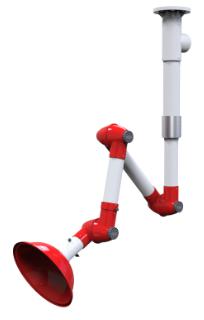 2、 四段式伸缩导管:采用PP材质,管径为DN75mm,总长度为1650mm。工作范围为:-15-90℃。本四段式伸缩导管有三处可转动之旋转关节,关节材质采用高密度PP聚丙烯,关节颜色:白色/红色,可360°旋转调节方向,易拆卸、重组及清洗。每一关节均有可调节松紧的旋钮,并配有不易老化的高密度橡胶关节密封圈,可便关节任意旋转或固定,以便在操作半径内取得最佳集气位置。别外,集气罩上方有一的动调节阀,可根据实验要求调节气流量大小