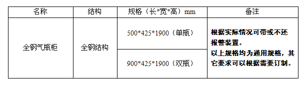 3、内置双不锈钢卡圈(套锁式)以固定气瓶,翻推式垫板方便气瓶推入;内设排风口,便于泄漏的气体排出,整体外形设计美观大方;配有燃气泄漏报警装置,适合各种气体气瓶的存放。